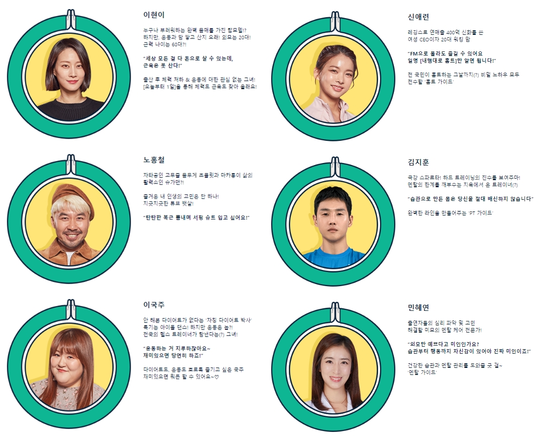 출연진 소개 - 모델 이현이, 방송인 노홍철, 개그우먼 이국주, 전문가 신애련, 김지훈, 민혜연이 출연합니다