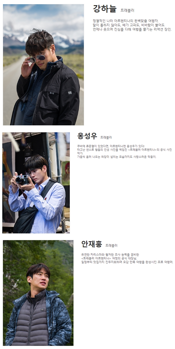 세 명의 스타가 함께 가는 여행지는 넉넉하고 풍만하나 척박하고 거친, 지구 반대편 가장 먼 나라 아르헨티나. 예술과 열정이 살아 숨 쉬는 아르헨티나의 심장 부에노스아이레스부터 조나단 스위프트가 ‘걸리버 여행기’의 영감을 얻었다는 거인들의 땅 파타고니아, 그리고 남극으로 가는 입구인 남아메리카 대륙의 최남단 땅끝까지. 땅덩이가 너무 커서 하루에 4계절이 모두 있다는 이 나라를 3명의 트래블러가 어떻게 여행할지, 어떤 이야기를 들려줄지 기대를 모으고 있습니다.